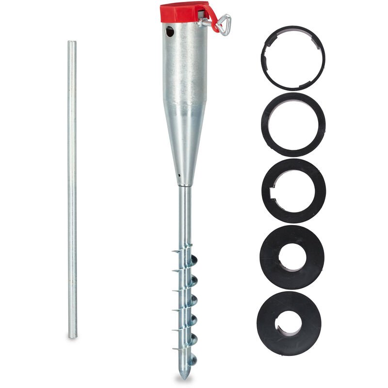 Relaxdays, noir Pied, Porte-parasol, Support à vis, Douille de sol, Diamètres 19-32 mm, Camping, Plage, rouge