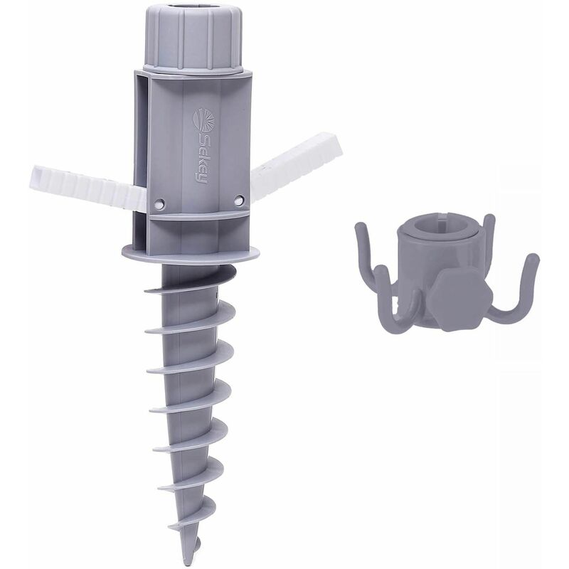 Sekey Support de Parasol pour Plage Sable ou Terre Pieds de Parasols, Pieds de Parasol de Plage à hélice à Visser dans Le Sable, Pied Parasol Sable (Gris)