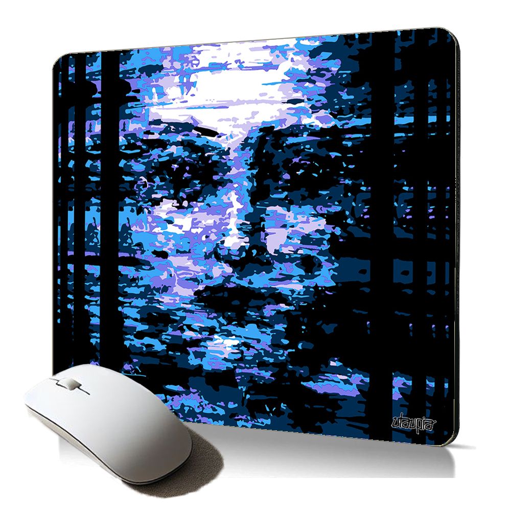 tapis de souris souple portrait visage unique pour pc fixe art paranormal Bleu support ergonomique peinture visage artistique