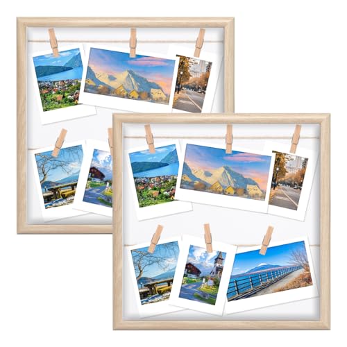 Bofanze Lot de 2 Cadre Photo avec Pinces et Laisse Support Photo Mural DIY avec Pinces Cadre Photo en Bbois DIY avec Corde et Pinces pour Photos, Cartes Postales, Notes, Cartes de Concert