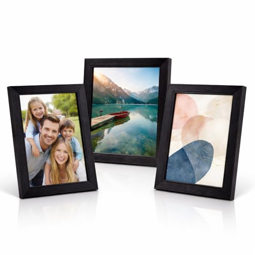 Lot de 3 cadres photo 10,2 x 15,2 cm en verre transparent nervuré noir avec support mural, idéal pour les certificats, les photos et les photographies
