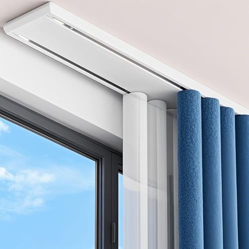 Tringle à rideaux à double rangée – Support de plafond coulissant robuste pour stores de fenêtre – Parfait pour le salon, la chambre à coucher et l'hôpital – Rails durables et faciles à installer