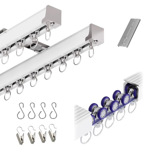 Système de Stores à Double Rail Silencieux Heavy du - Support de Plafond en Aluminium de 4,9 m (16,1 pi) pour Rideaux, Tringle Incluse - Idéal pour Les Chambres et Les hôtels - Blanc