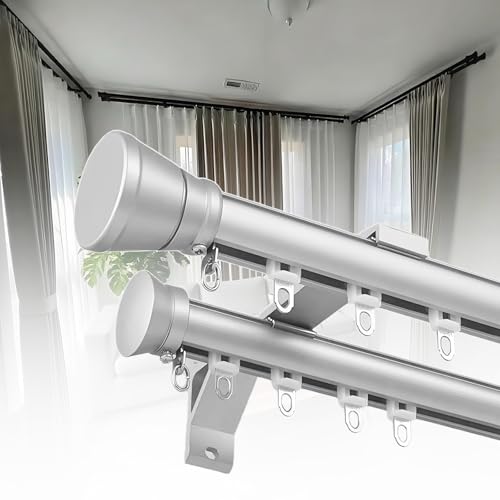 LIYI929GP Tringle À Rideaux Courbe Et Droite, Rail De Rideau Simple Et Double, Peut Être Étendu Ou Coupé Librement avec Connecteur Dédié, Rail pour Rideaux en Aluminium avec Support Mural Plafond