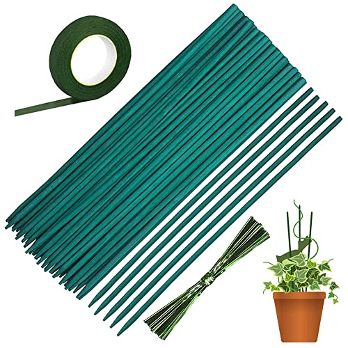 50 Pièces Tuteurs pour Plantes Vertes Bâtonnets de Soutien Tiges de Support Bambou avec 30 Yard Ruban de Papier et 50 Attaches Végétales Tuteur pour Plantes Grimpantes Bâton de Plante (15in / 38 cm)