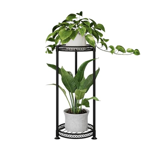 Bamworld Support Plantes Intérieur et Extérieur à 2 Niveaux Rond en Métal - Support Plante Solide pour Jardin, Terrasse, Salon, Balcon