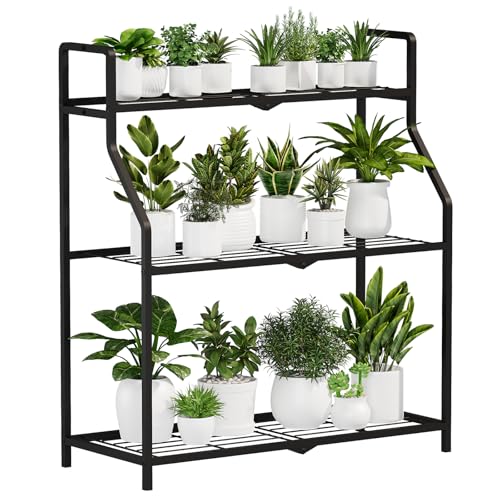 Bamworld Support Plantes Intérieur, Porte Plante Intérieur 3 Niveaux en Métal, Support Plante pour Salon Balcon Chambre, Étagère Plante Multiples Pots, Noir