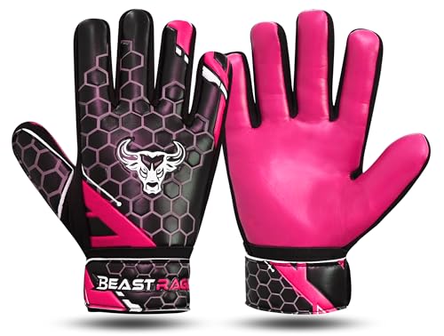 BEAST RAGE Gants de Gardien de But pour Enfants,garçons et Jeunes,Gants de Gardien de But en Latex antidérapant 4MM,Support de Poignet (Rose, Taille 5 Convient pour Les Enfants de 9 à 12 Ans)