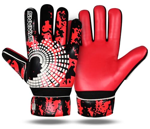 SAWANS Gants de gardien de but de football pour garçons, enfants, jeunes et adultes, gants de gardien de but de soccer, paumes à forte adhérence, support de poignet junior antidérapant (rouge, taille