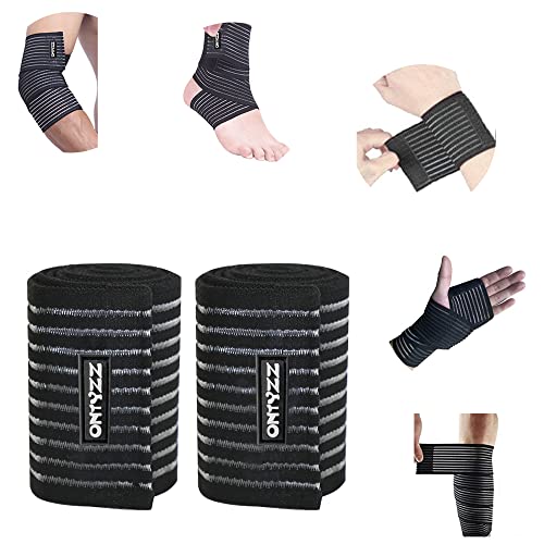 ONTYZZ Support de Coude Bandage 1 Paire Haute Élasticité Bandage du Poignet Support de la Main pour Sport Gymnase Course S'accroupir Entraînement Bandage de Cheville Attelle Noir/90cm
