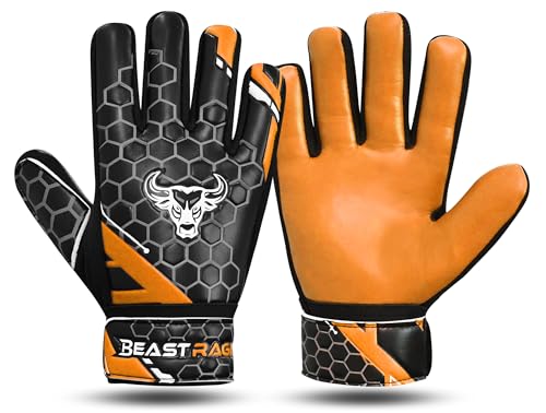 BEAST RAGE Gants de Gardien de But pour Enfants,garçons et Jeunes,Gants de Gardien de But en Latex antidérapant 4MM,Support de Poignet (Orange, Taille 5 Convient pour Les Enfants de 9 à 12 Ans)