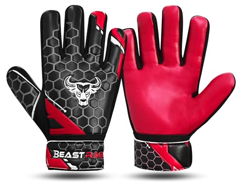 BEAST RAGE Gants de gardien de but pour enfants ,Gants de gardien de but pour enfants avec double support de poignet (Rouge, Size 5 suitable for 9 to 12 Years old)