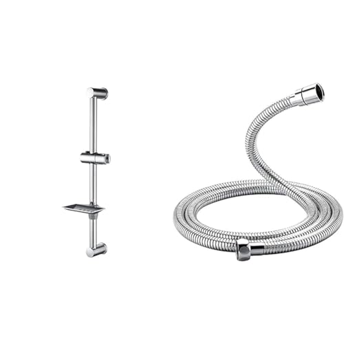 Ibergrif M20802, Barre de Douche, Support Pommeau de Douche avec Porte-Savon, Acier & GRIFEMA G851-18, Flexible de Douche Universel (G1/2 pouces, 1.8M), Tuyau de Douche Anti-Torsion et Anti-Pliure
