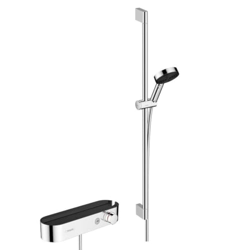 hansgrohe Pulsify S - Set de douche, Ensemble de douche avec mitigeur thermostatique, douchette, barre de douche 90cm, support et flexible de douche 160cm, Pommeau de douche avec 3 jets, Chromé