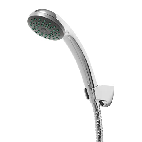 TATAY Kit pommeau de douche Vanity avec support et tuyau de 1,5 m, 8,5 cm de diamètre, ABS, 1 position, système d'économie d'eau et anti-calcaire. Nettoyage facile, garantie 5 ans. Chromé