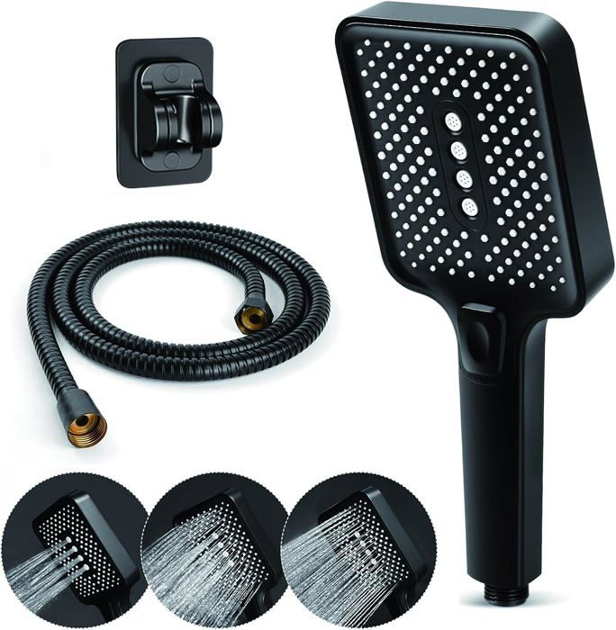 Pommeau de douche haute pression - LIKE NO OTHER - 3 modes réglables - Tuyau 15 m - Support ajustable - Noir