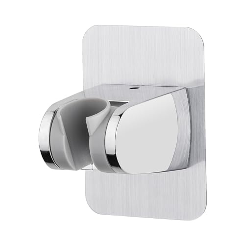Ibergrif M20405, support de pommeau de douche sans perçage adhésif 3M - support de douche réglable (45°), support de douchette universel, douchette, support de douche mural, chromé, argent