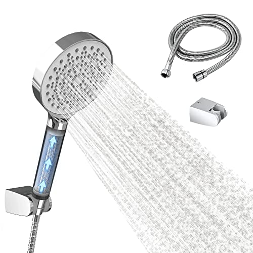 Pommeau de douche filtré, 15 étapes pour eau dure, 10 modes haute pression avec tuyau de 152,4 cm et support, élimine le chlore et les substances nocives