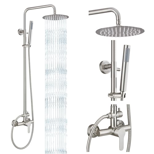 SHAMANDA Système de douche avec bec cascade et pommeau de douche à main, ensemble de robinet de douche de 30,5 cm avec valve ronde et support mural, nickel brossé, L101-2