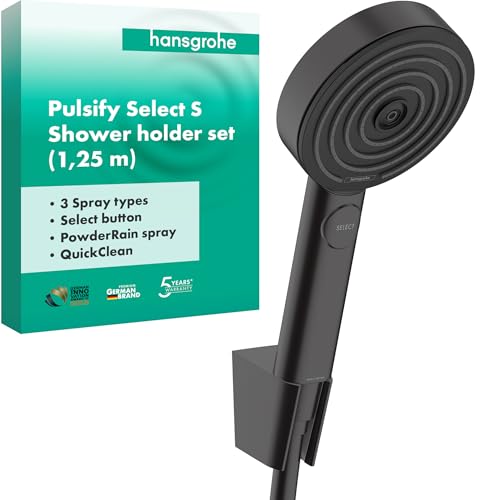 hansgrohe Set de Douche Pulsify S, Ensemble de Douche, Pommeau de Douche avec Support de Douche et Flexible 1,25 m, Douchette à Main avec 1 Type de Jet, Noir Mat, 24301670