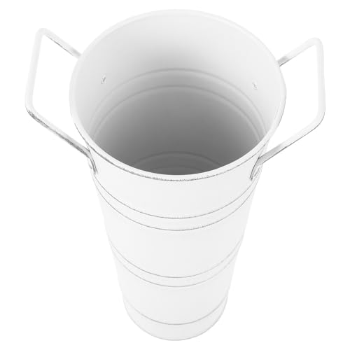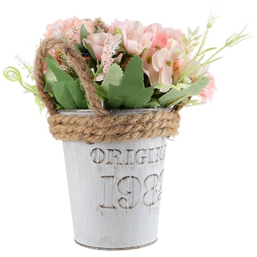 BEBEMOKO Pot de Fleurs Rétro en Fer Forgé Blanc Rouillé Ø11 X 7,5 Cm H23, Vase Seau Décoratif pour Composition de Fleur Intérieure, Support Décoratif pour Plante D’intérieur, Décoration