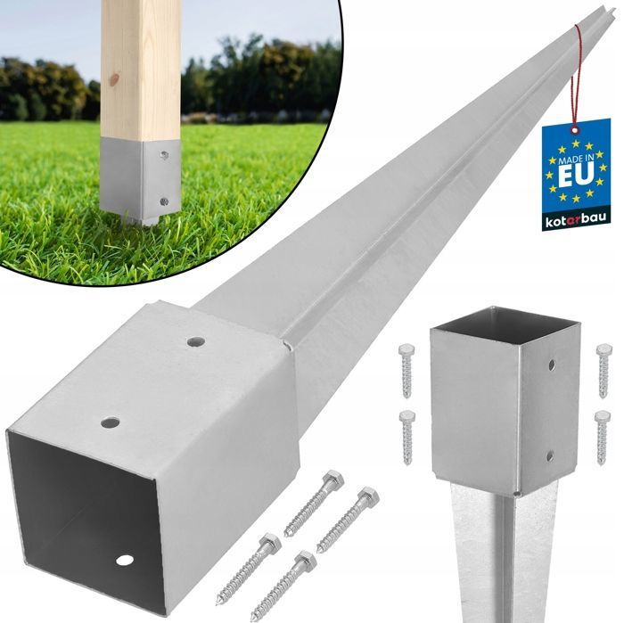 Support de Poteau a Enfoncer en acier galvanisé - Piquet pour poteau de clôture - 91 x 91 mm - Longueur 750 mm - KOTARBAU®