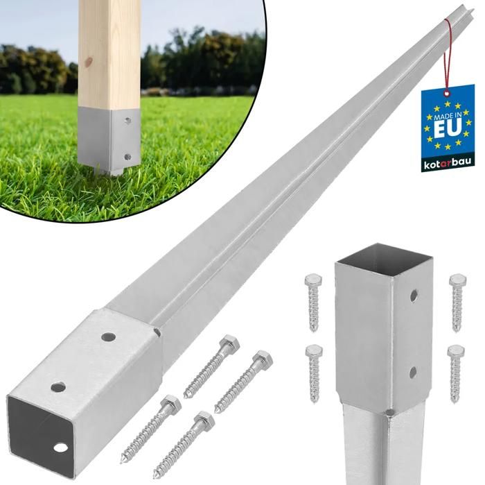 Support de Poteau a Enfoncer en acier galvanisé - Piquet pour poteau de clôture - 101 x 101 mm - Longueur 750 mm - KOTARBAU®