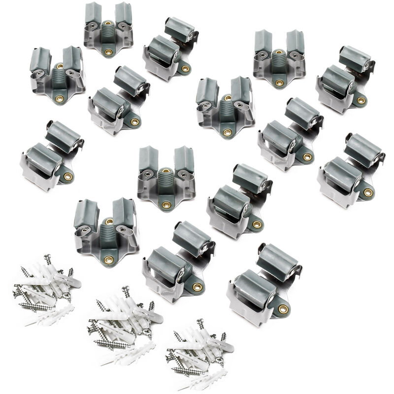 Wiltec Jeu de 15 Accroche-balai mural, 50 x 50 x 42 mm par pièce, en acier, Support porte-balai pour outils de nettoyage et jardinage Râtelier