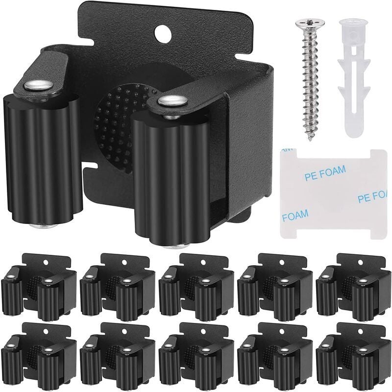 Wiltec - Jeu de 10 Accroche-balai mural, 50 x 50 x 42 mm par pièce, en acier, Support porte-balai pour outils de nettoyage et jardinage Râtelier