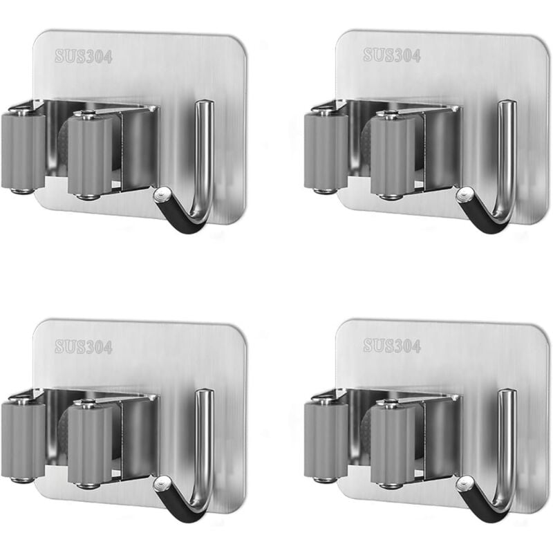 Lafomukea - Support mural pour balai à franges en acier inoxydable avec crochet pour cuisine, jardin, balcon, garage, gris, 4 pièces