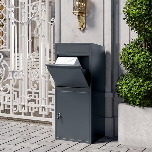 VEEHAUS Grande boîte aux Lettres pour Colis - Anthracite - en tôle galvanisée - pour l'extérieur - Grande Taille XL et boîte aux Lettres - avec Compartiment à Colis (M-Tikelia, sans Support)