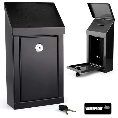 Boîte à suggestions en métal avec Fente supérieure et Serrure avec clés, Support Mural avec Trous pré-percés, 25,4 x 15,2 x 6,3 cm, boîte aux Lettres étanche pour Bureau à Domicile (Noir)