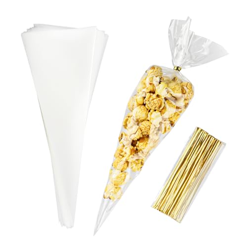 125 Pièces Sachet Transparents Bonbon pour Biscuits, Cellophane Sacs Plastique de Cadeau Noel avec Cravates Torsadées pour Patisserie Gateau Chocolat