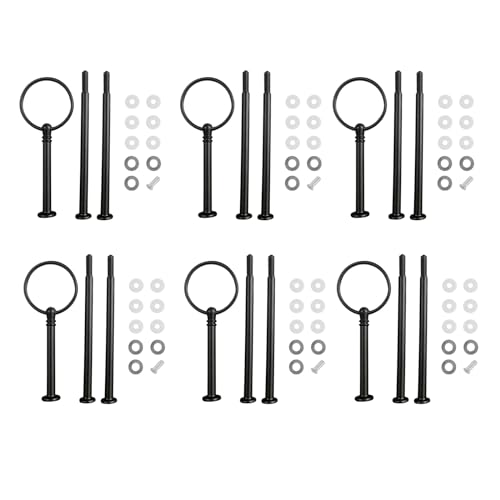 Koomuao 6pcs Poignée Support Assiettes Presentoir a Gateau 3 Étages, Kit de construction en Métal, Support Tiges à Gateau Présentoir à Macarons pour Fête Anniversaire Mariage (Noir)
