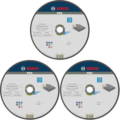 Bosch 1x Disque à tronçonner PRO Stainless Steel Longlife pour grande meuleuse angulaire et alésage 22,23 mm (pour Acier inoxydable, Ø 230 mm, Professional Accessoire Grande meuleuse angulaire)