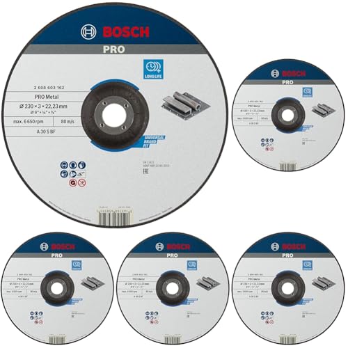 Bosch 1x Disque à tronçonner PRO Metal Longlife pour grande meuleuse angulaire et alésage 22,23 mm (pour Acier, Ø 230 mm, Professional Accessoire Grande meuleuse angulaire) (Lot de 5)