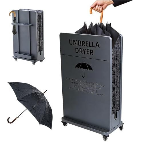 Sèche-parapluie écologique avec roulettes – Support pour enlever l'eau de pluie, récupérateur d'égouttement, bac à eau amovible et support pour un séchage rapide et un nettoyage des sols