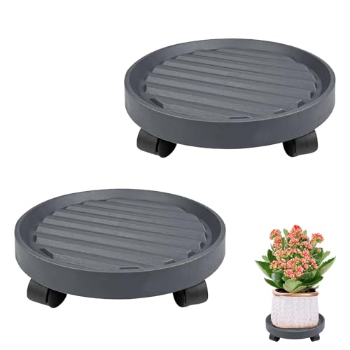 Myrindor 2 Pièces Porte Plante a roulettes, Supports de Pots de Fleurs, Plateau Roulette Plante, Support de Fleurs Rotatif, Socle Roulette Plante, Chariot à Plantes pour Balcon, Salon, Terrasse(Gris)