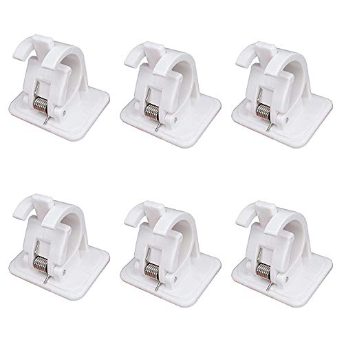 Powerruif Lot de 6 supports de tringle à rideaux sans perçage - Crochets autocollants - Tringle à rideaux à coller avec vis - Support de tringle à rideau - Crochets adhésifs - Pour cuisine, salle de