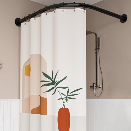 Tringles de Rideau de Douche sans Perçage - 304 Acier Inoxydable - en Forme de L, 75-105 x 75-105 cm, avec 24 Anneaux, sans Support de Plafond, Tringle Douche Angle pour Baignoire et Douche - Noir