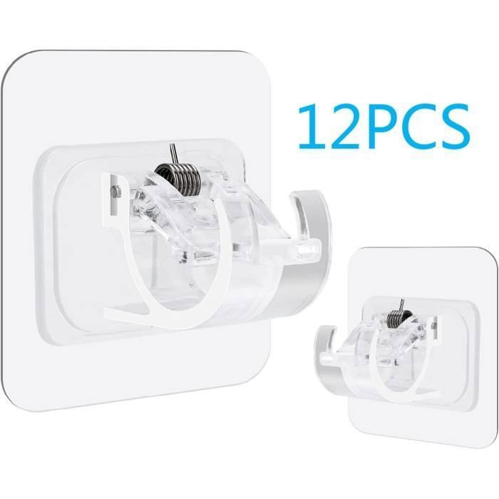 12Pcs Support Rideau Sans Percage Support de Tringle à Rideau Auto Adhésif Crochets Transparent pour Rideaux ou Porte-Serviettes