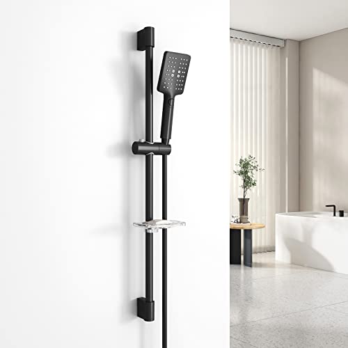 EMKE Kit de douche avec barre de douche 85 cm + pommeau de douche avec tuyau de 150 cm + porte-savon et support pour salle de bain, colonne de douche, ensemble de douche et kit de douche Noir