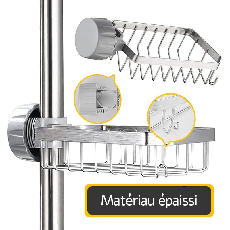 Porte Savon pour Etagere Douche Support Shampoing Douche sans Perçage pour Tringle 20-32mm