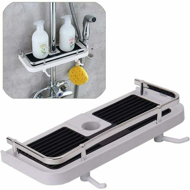 Étagère de Douche Sans Percage Tablette de Douche pour Poteau avec Support de Pommeau,Étagère de Rangement de Salle de Bain Pour Shampooing Savon,et