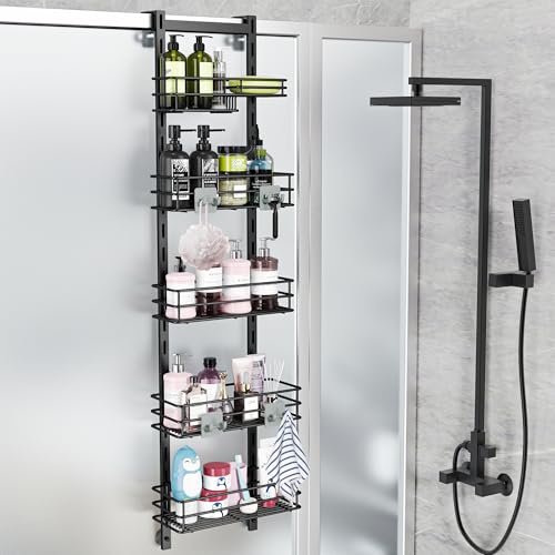 Orimade Étagère de douche réglable à suspendre sur la porte - Antirouille avec crochet - Support pour shampooing - Étagère de salle de bain avec porte-savon - Panier de douche avec ventouse - Taille