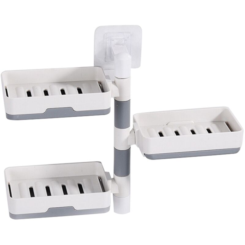 Boîte à savon murale rotative 3 étages HIPS - Support de douche amovible et pivotant à 180° pour salle de bain - Conteneur de savon blanc anti-fuite