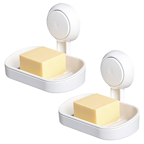 LEVERLOC Porte Savon à Ventouse sans Perçage, Porte-Savon Douche Charge 3 KG, 1s Installation, Rotation à 360°, Impérable & Réutilisable Support pour éponges pour Salle de Bain, 2 Pack