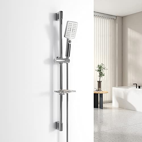 EMKE Ensemble de douche avec barre de douche de 72 cm, douchette à main avec tuyau de 150 cm, porte-savon et support, pour salle de bain, colonne de douche, chromé