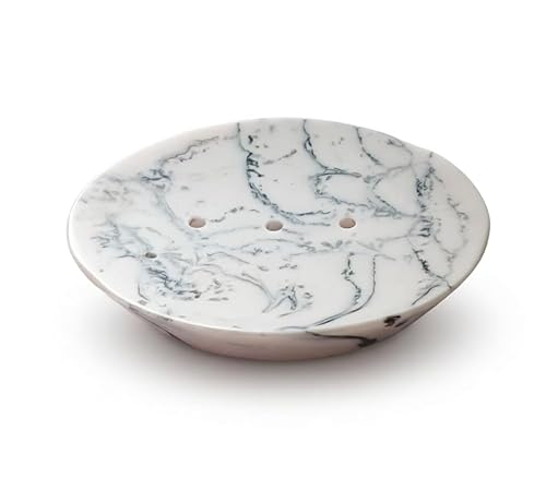 Luxspire Porte-Savon, Boîte à Savon en Résine et en Gravier, Support de Savon Ovale Durable avec Motif en Marbre pour Salle de Bain, Douche, Cuisine pour Ranger Bougie, Savon - Gravier Blanc