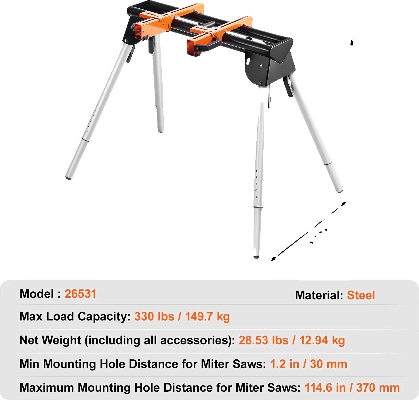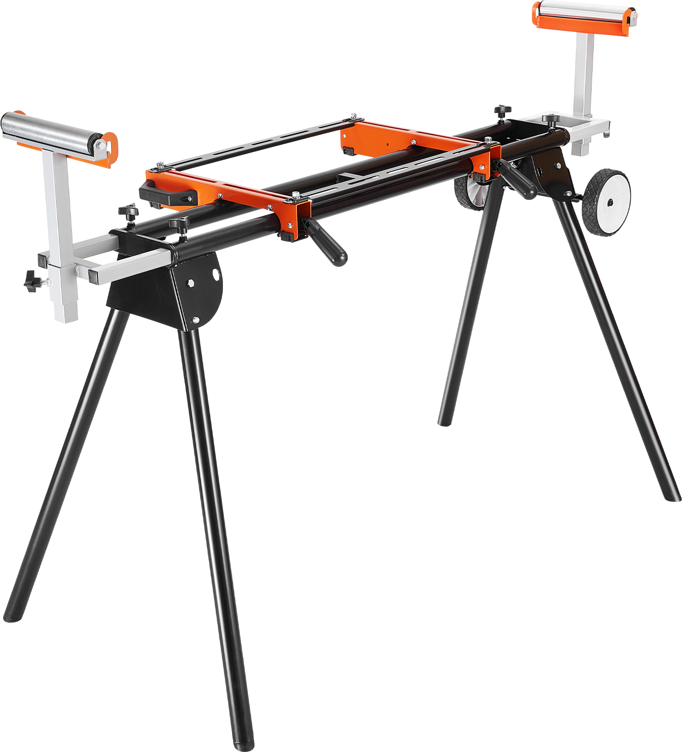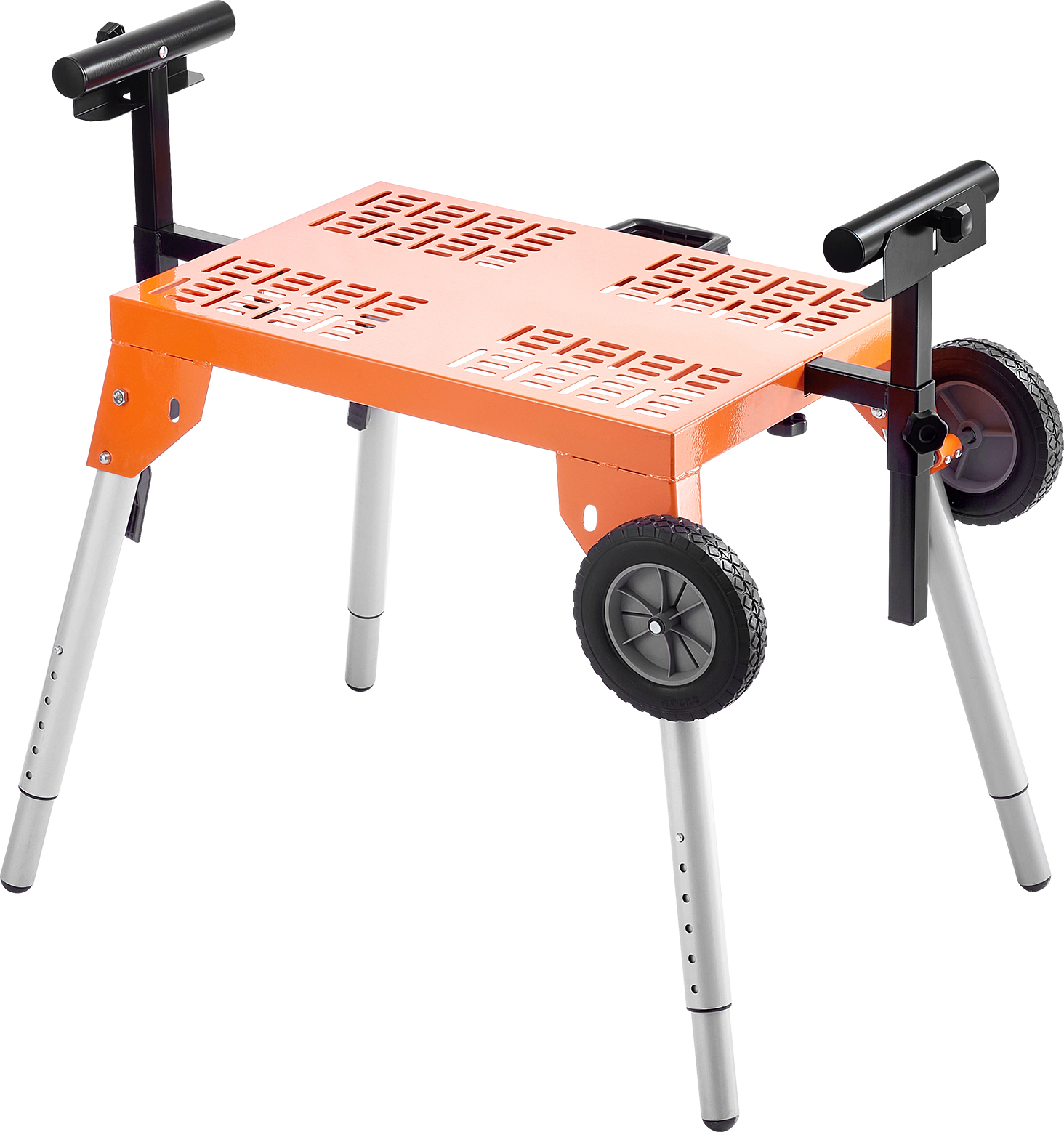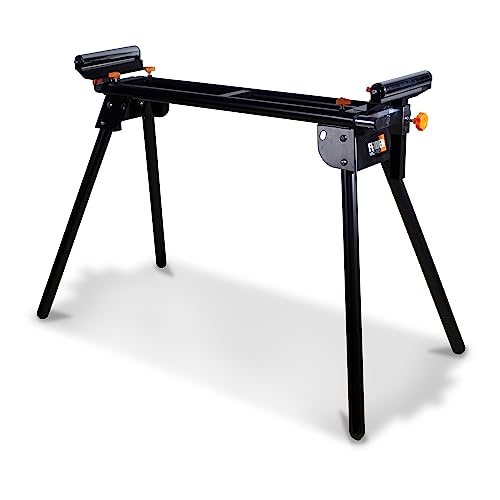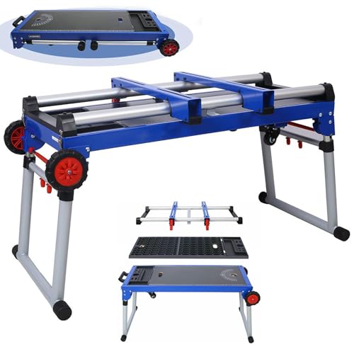 Support pour scie à onglet avec tablette - charge max. 150 kg - réglable en hauteur et sur roulettes